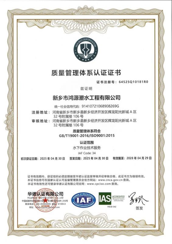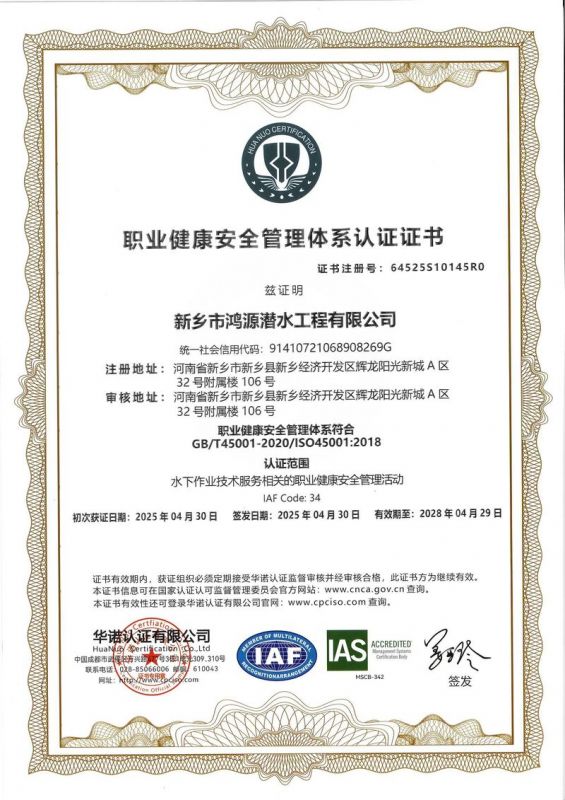 新鄉(xiāng)市鴻源潛水工程有限公司,有從事潛水行業(yè)二十多年的潛水團(tuán)隊。公司具有獨立法人資格,注冊資金600萬元。   公司的潛水人員、潛水檢測人員、潛水焊接人員均經(jīng)過正規(guī)培訓(xùn),全部持有國內(nèi)權(quán)威機構(gòu)頒發(fā)的資質(zhì)證書。我公司水下焊接可靠,質(zhì)量優(yōu)良,技術(shù)過硬,可水下焊接鋼管樁,水下焊接犧牲陽極鋅塊,水下焊接連接梁,水下封堵焊接等等施工,報價合理,拒絕暴利,竭誠為您服務(wù)!水下電焊工程,水下電焊報價合理水廠電廠的水池、水道清淤、泵房清理、管道鋪放、攔污柵清污、更換閘門起落、導(dǎo)流洞、水庫壩體等維修施工水下補強加固:對水利電力系統(tǒng)水庫、大壩及沿海內(nèi)河港口、碼頭等水工建筑物水下鋼結(jié)構(gòu)或混凝土結(jié)構(gòu)缺陷進(jìn)行。無論是對現(xiàn)在或?qū)恚紝⑹且豁椃浅S幸饬x的工作。水下焊接將成為水下作業(yè),水下安裝,水下維修等水下作業(yè)工程中不可或缺的重要工藝手段.公司堅持“先進(jìn)的技術(shù)設(shè)備.優(yōu)質(zhì)的服務(wù)質(zhì)量.服務(wù)效率.熱情的服務(wù)態(tài)度,為生產(chǎn)經(jīng)營理念,以拒絕暴利合理收費為原則立足全國市場。我們將以優(yōu)質(zhì)的產(chǎn)品與售后服務(wù)來打造用戶良好體驗。愿同新老客戶竭誠合作、互惠互利、共創(chuàng)輝煌!水下電焊工程,水下電焊報價合理,鋼圍堰清淤公司鴻源-水下電焊工程,水下電焊報價合理,鋼圍堰清淤公司,水下電焊工程。      新鄉(xiāng)市鴻源潛水工程有限公司我公司成功打造鴻源優(yōu)質(zhì)服務(wù)。公司的潛水人員、潛水檢測人員、潛水焊接人員均經(jīng)過正規(guī)培訓(xùn),全部持有國內(nèi)權(quán)威機構(gòu)頒發(fā)的資質(zhì)證書。經(jīng)過多年經(jīng)營,公司具備公司具有獨立法人資格。